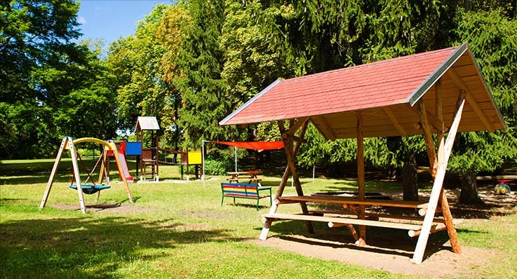 Sollte das Wetter einmal nicht in den Park einladen, stehen unsere Sporthalle und die Fitnessgeräte zur Freizeitgestaltung zur Verfügung.